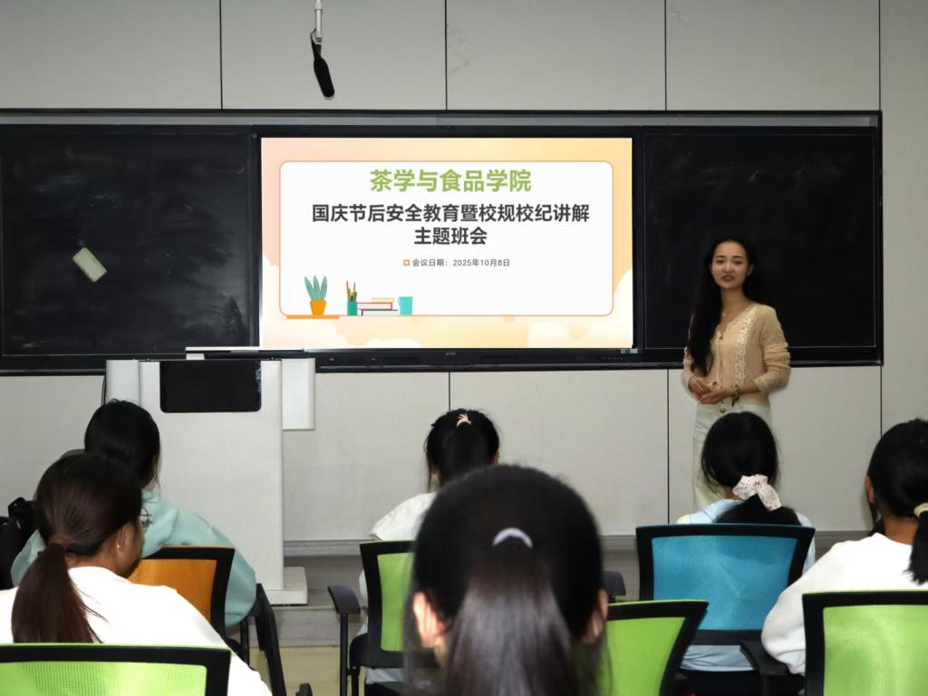 茶学取食物学院于教九楼108教室召建国庆节后平安教育暨校规校纪从题班会。以规范步履保障成长,她连系《高档学校学生行为原则》取学校办理轨制,逐渐回归常态;无效提拔了学生的风险防护能力取行为规范认识,三要连系现实,将来。